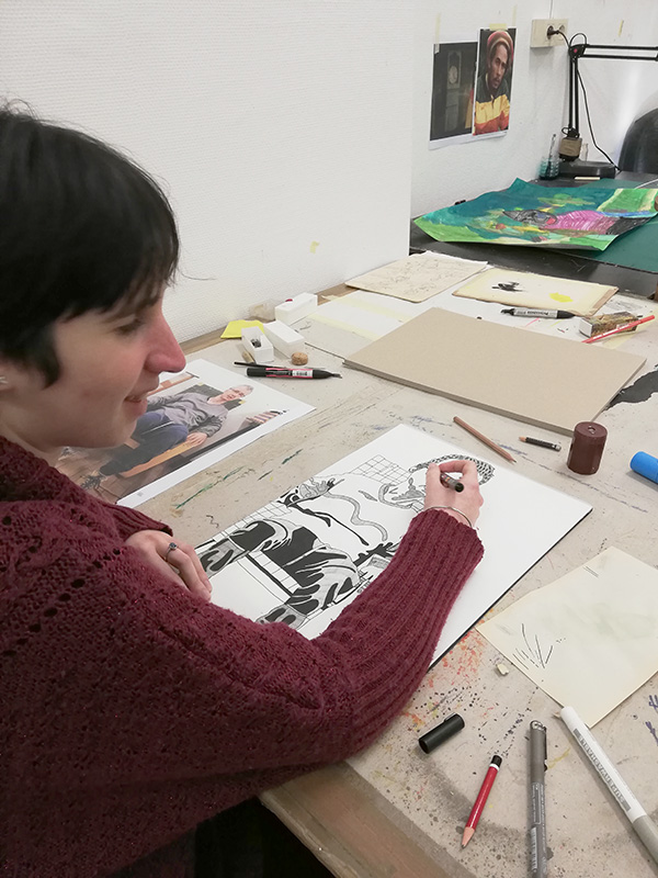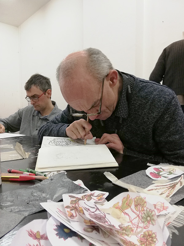 Bien au contraire, le travail en atelier c'est un véritable accompagnement. Une autre forme d'accompagnement, un accompagnement à travers leur vie/parcours d'artiste. Mais c'est un travail du quotidien avec ses joies et ses difficultés, des difficultés qui nous amènent à conscientiser chaque jour davantage toutes les facettes de la fragilité (mentales, physiques mais aussi affectives). Le travail en atelier c'est donc aussi envisager la création de relations humaines fortes, d'une confiance, d'un attachement entre individus qui impliquent chez nous de grandes responsabilités sur le plan relationnel.