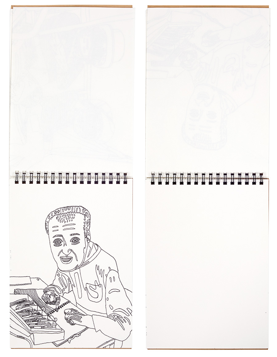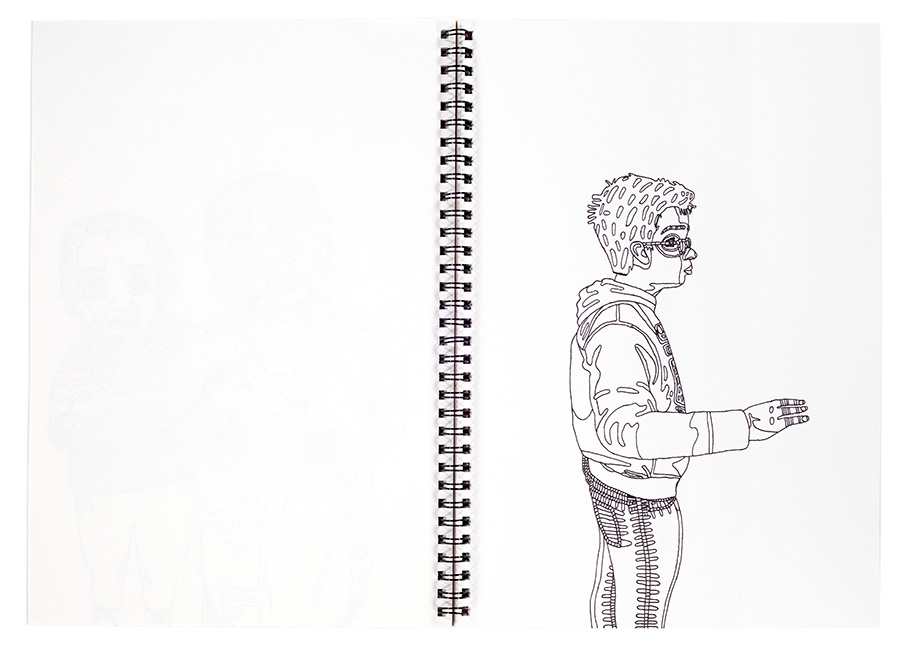 Les images dessinées par Sarah Albert, aux motifs stylisés et aux raccourcis graphiques étonnants, invitent à des lectures guidées par la vie de ses comparses devenus soudainement, grâce à ses atours graphiques, fiction. L’artiste traduit des parcelles de la vie intime de ceux-ci en retranscrivant la singularité d’un air ou d’une expression qui leur serait propre. Et la lecture se voit guidée par la découverte de ces singularités.