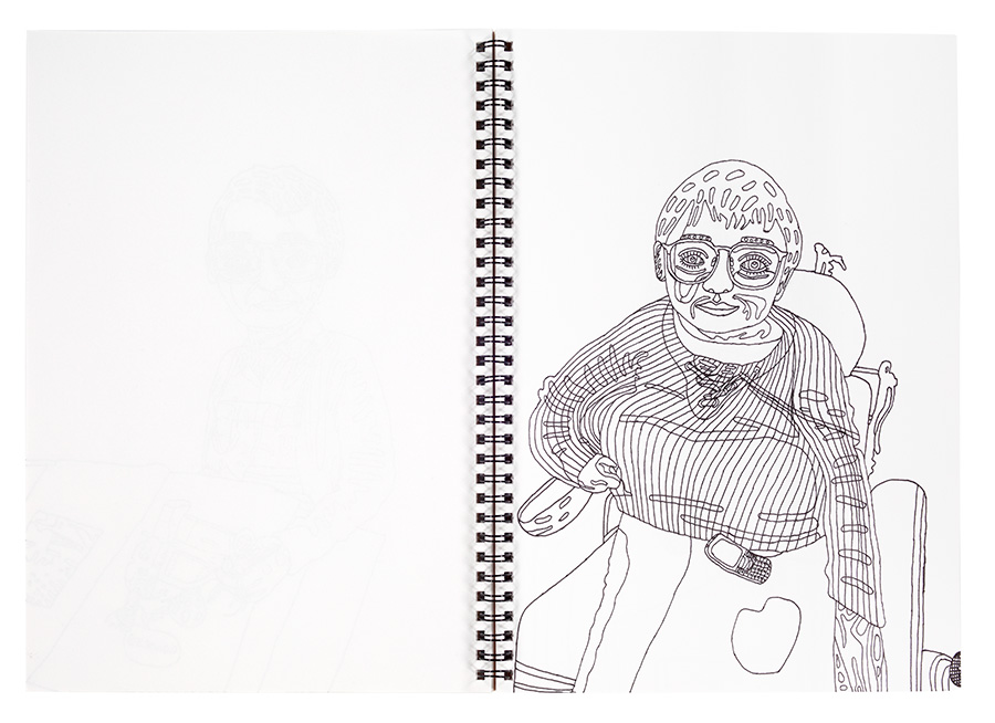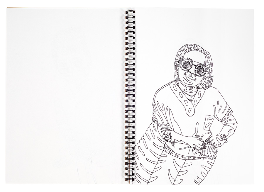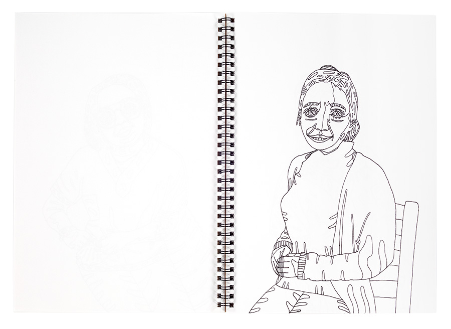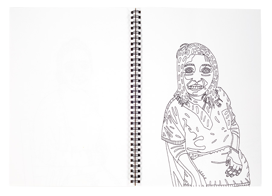 Le talent inné de Sarah et son sens aiguisé de l’observation ont permis l’émergence de portraits sensibles et touchants, rassemblés dans deux carnets de bord.